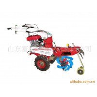 微耕机型式为牵引、驱动兼用型。一般采用风冷或冷凝式柴油机,功率3~5kW。柴油机与变速箱之间的功率传递为皮带传动或直接传动。离合器为张紧式或摩擦片式。变速箱是简单变速箱,档位少,常见的有2~4个前进档,2个倒档。变速箱壳体,有的采用钢板冲压件,也有采用铸铝件或铸铁件。两驱动轴之间无差速器,驱动轴与轮胎或旋耕刀具总成相联接。手把可进行上下高度调节和左右角度调节。手把为封闭式,离合器和油门手柄分置左右,操作十分方便。