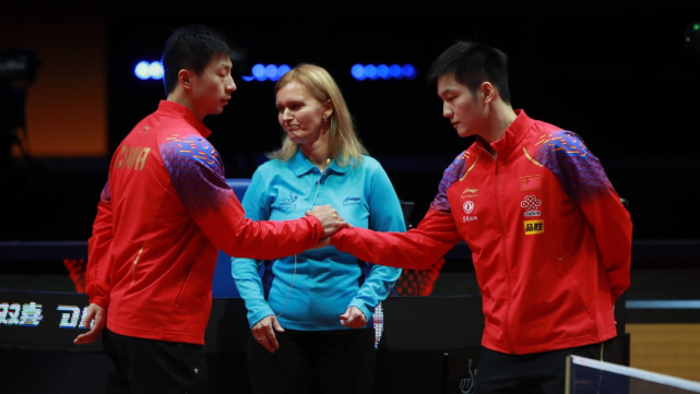 国乒这次总决赛有两对选手参加男双比赛,许昕/樊振东是赛会男双二号种子,他们首轮3-0完胜中国香港的黄镇廷/何钧杰。